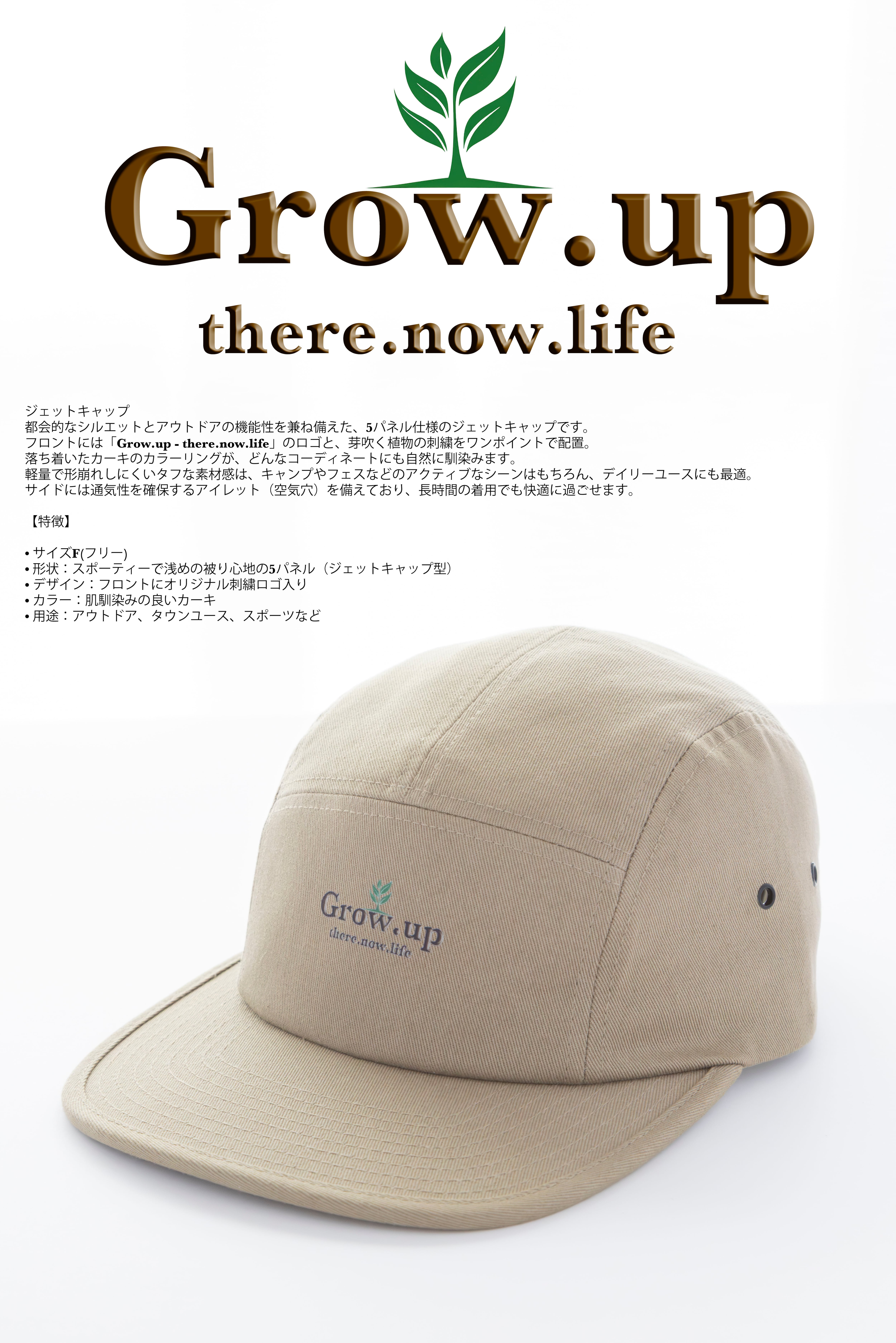 スタンダードロゴマークGrow.up there.now.lifeジェットキャップ